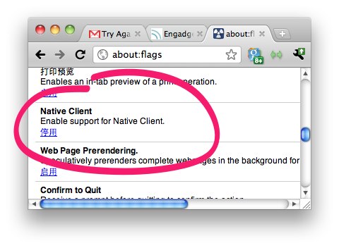 直到ABI稳定之前,Natiev Client默认都不会开启,一直需要通过about:flags在实验室里手动开启。
