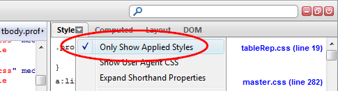- Only show applied styles in Style side panel (issue 223). If you dealing with a page that uses a lot of CSS rules and the Style side panel looks messy showing also overwritten declarations, you can utilize a new Only Show Applied Styles filter.