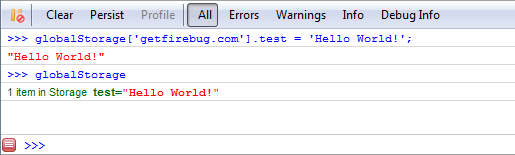 - Firebug console also supports logging of the globalStorage field. See following screenshot with an example.