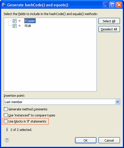 对于 Java 开发者而言,在生成 hashCode 和 equals 两个方法时,可以选择要加入这两个方法的属性,如下图所示: