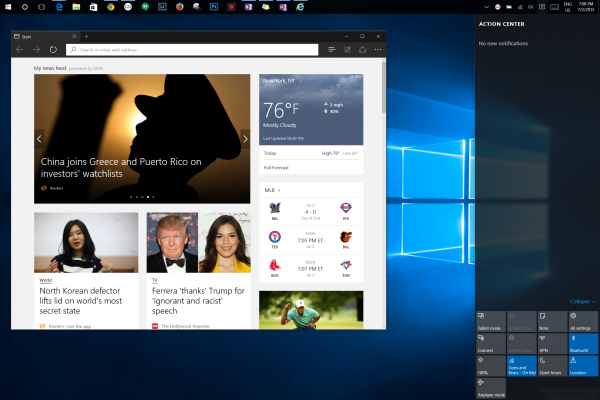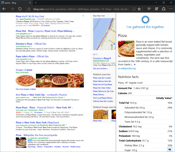 和其他浏览器比起来,Edge浏览器的搜索框提供了更多的功能,比如键入天气,不用点击搜索引擎就能看到回答。Cortana集成功能在不打扰用户浏览的情况下推送搜索答案。