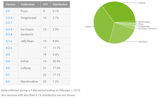 ·Android 6.0“棉花糖”(2015年10月):2.3%,增长0.1个百分点;