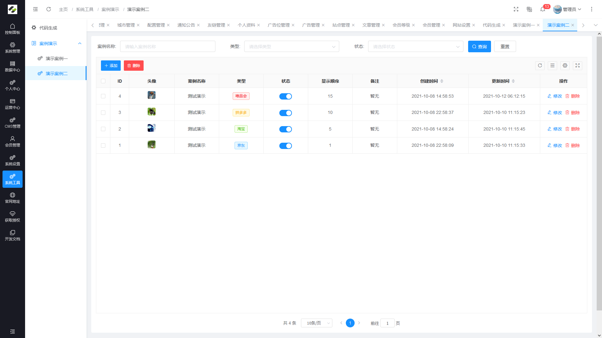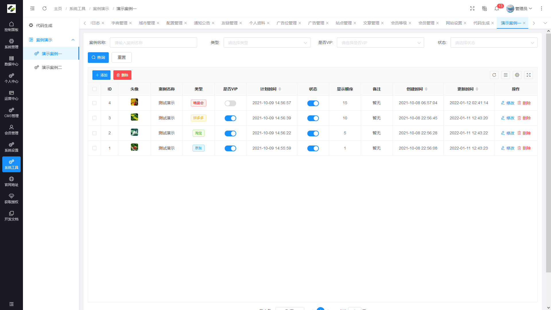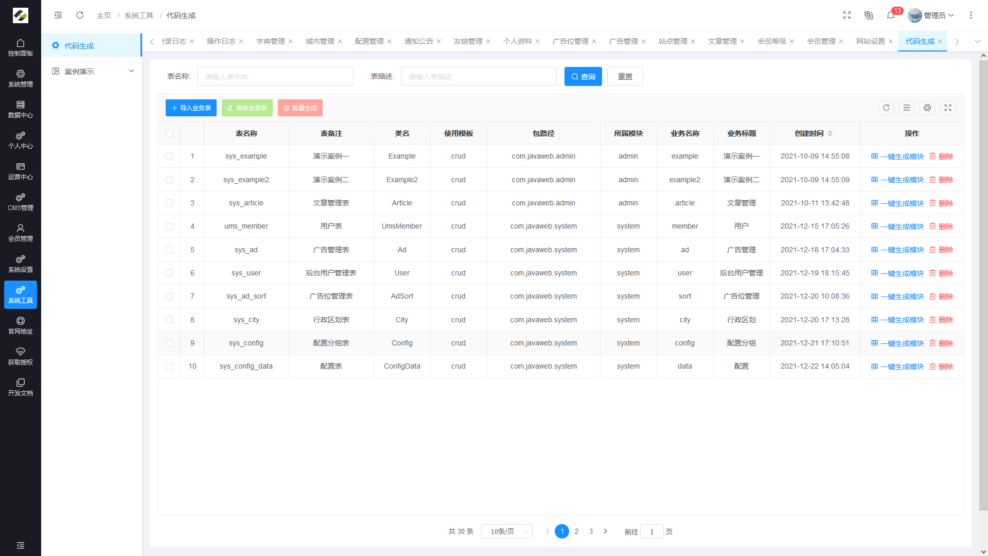 - 案例演示:常规代码生成器一键生成后的演示案例。