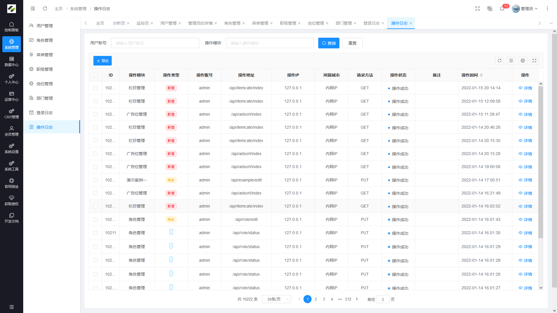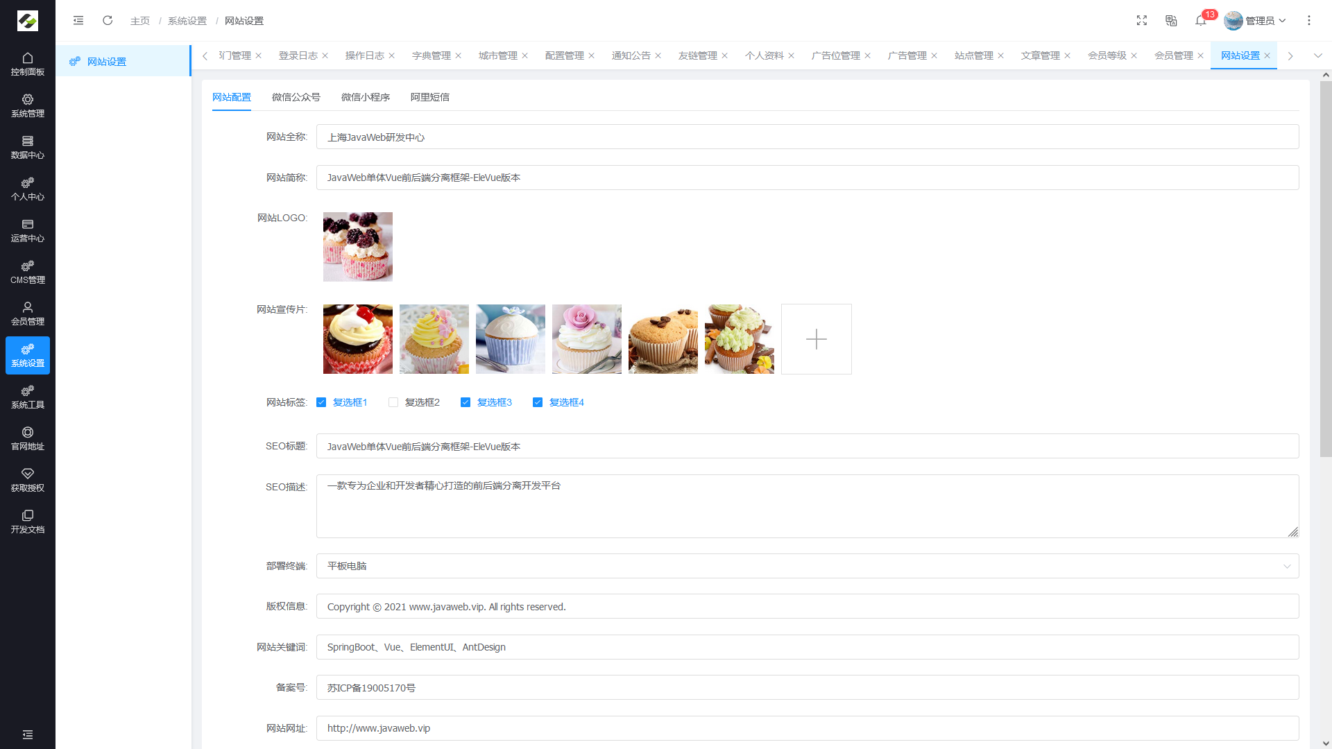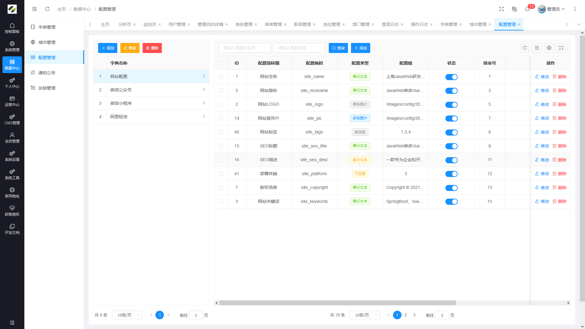 - 配置管理:对系统的常规配置信息进行维护,网站配置管理功能进行统一维护。