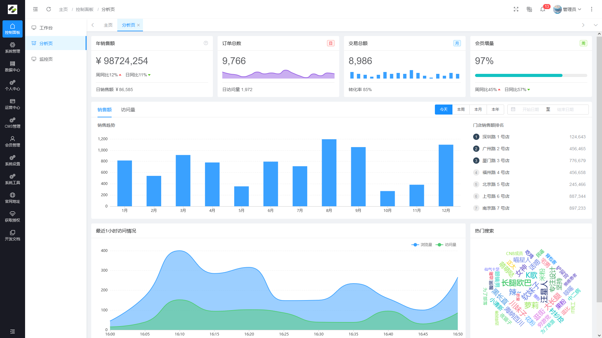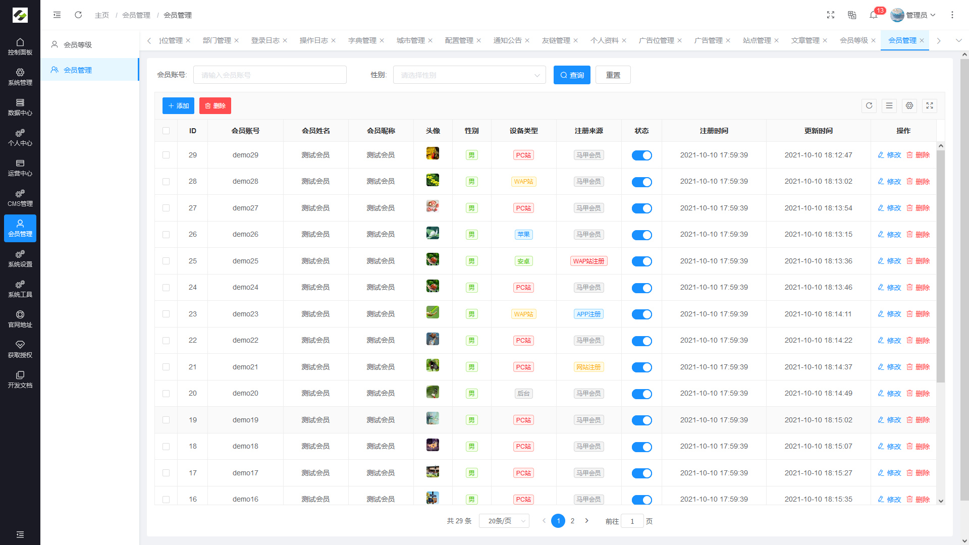 - 会员管理:对各终端注册的会员进行统一的查询与管理的模块。