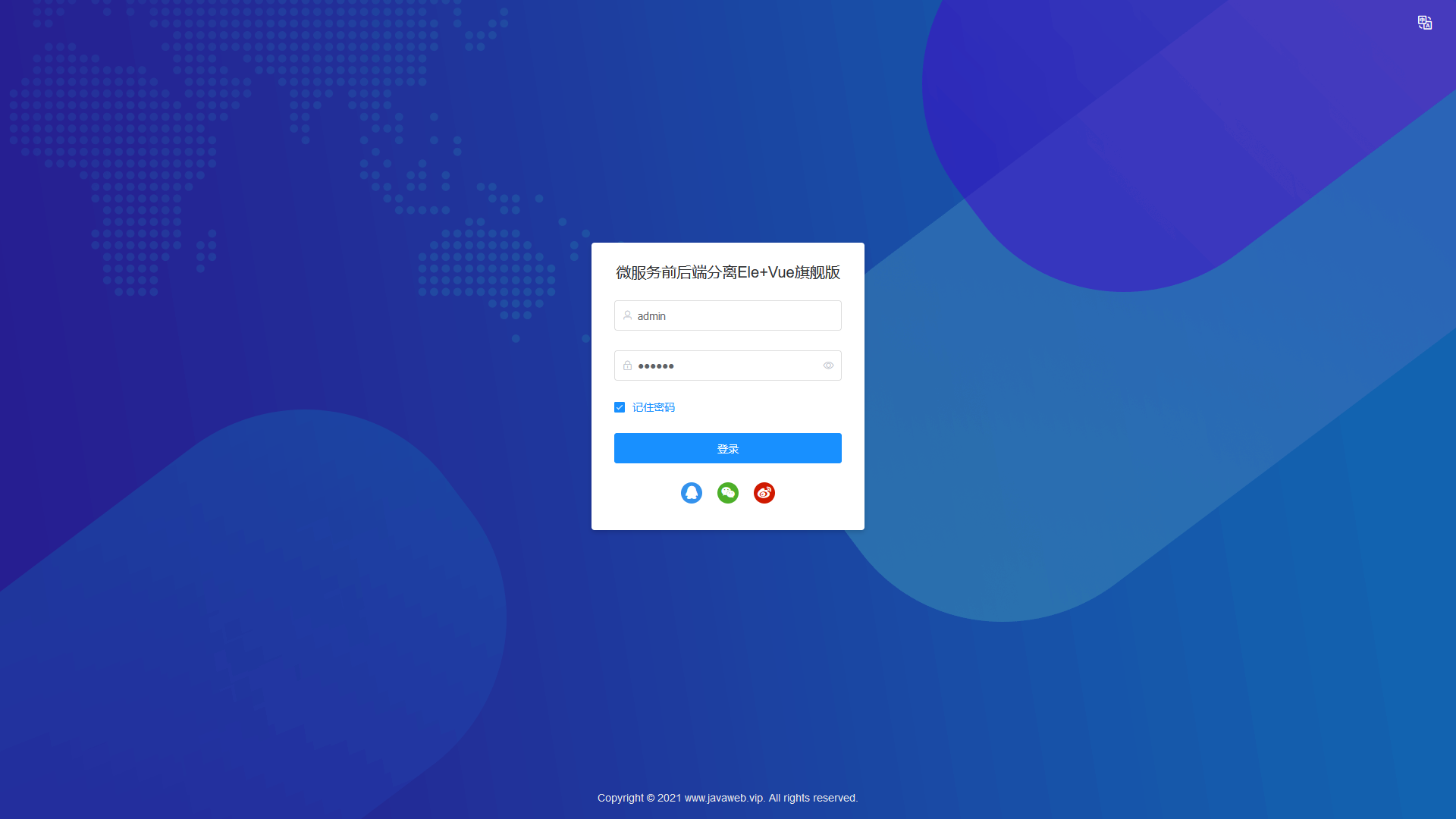 | admin | 123456 | 演示环境无法进行修改删除操作 |