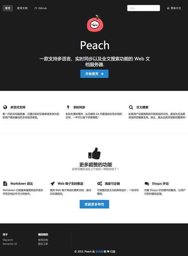 Peach 是一款支持多语言、实时同步以及全文搜索功能的 Web 文档服务器。
