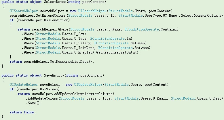 - 在开源框架【NBearLite】的基础上扩展,使用“结构实体”来解析前台的Json数据,避免了ORM中实体的反射转换的性能消耗。