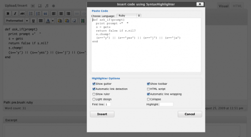 这是一个 TinyMCE 的语法高亮编辑器插件,使用 SyntaxHighlighter 语法着色引擎。